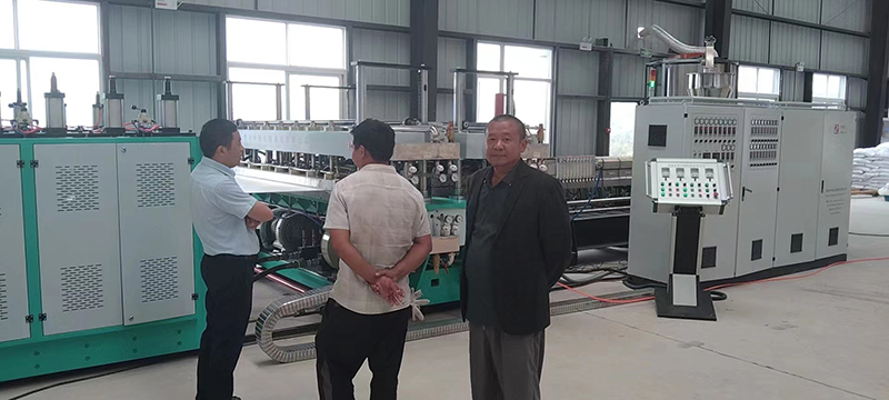 客戶在炎炎夏日里親臨現場試機,我們的設備和服務怎能不給力?中空板生產線高速生產設備準時交付了,客戶滿意,但我們并不放松,后續(xù)的服務要跟上!