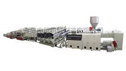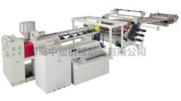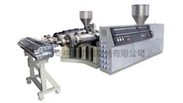 PVC 琉璃瓦生產(chǎn)線,由二臺(tái)錐形雙螺桿擠出機(jī),一臺(tái)單螺桿擠出機(jī),...